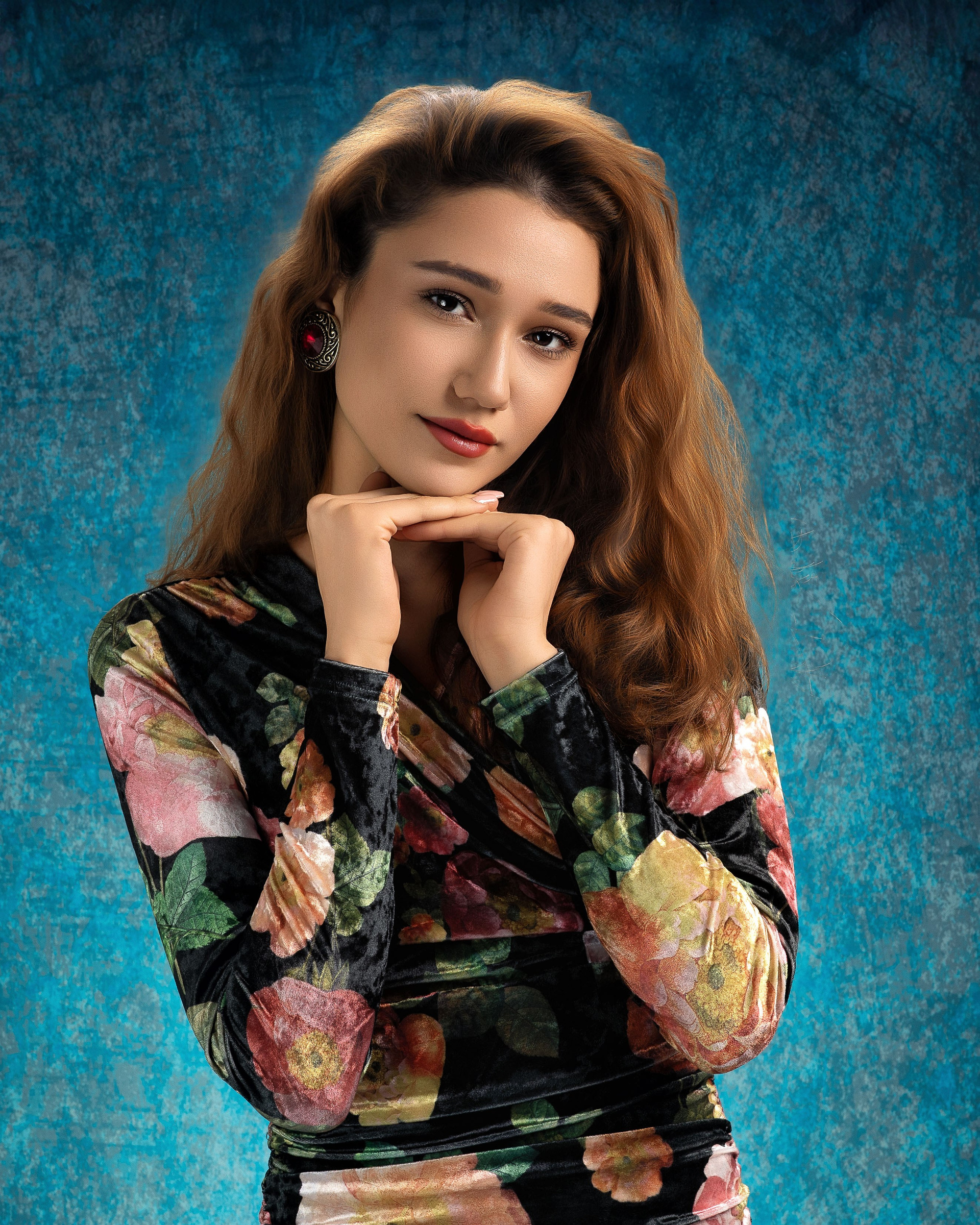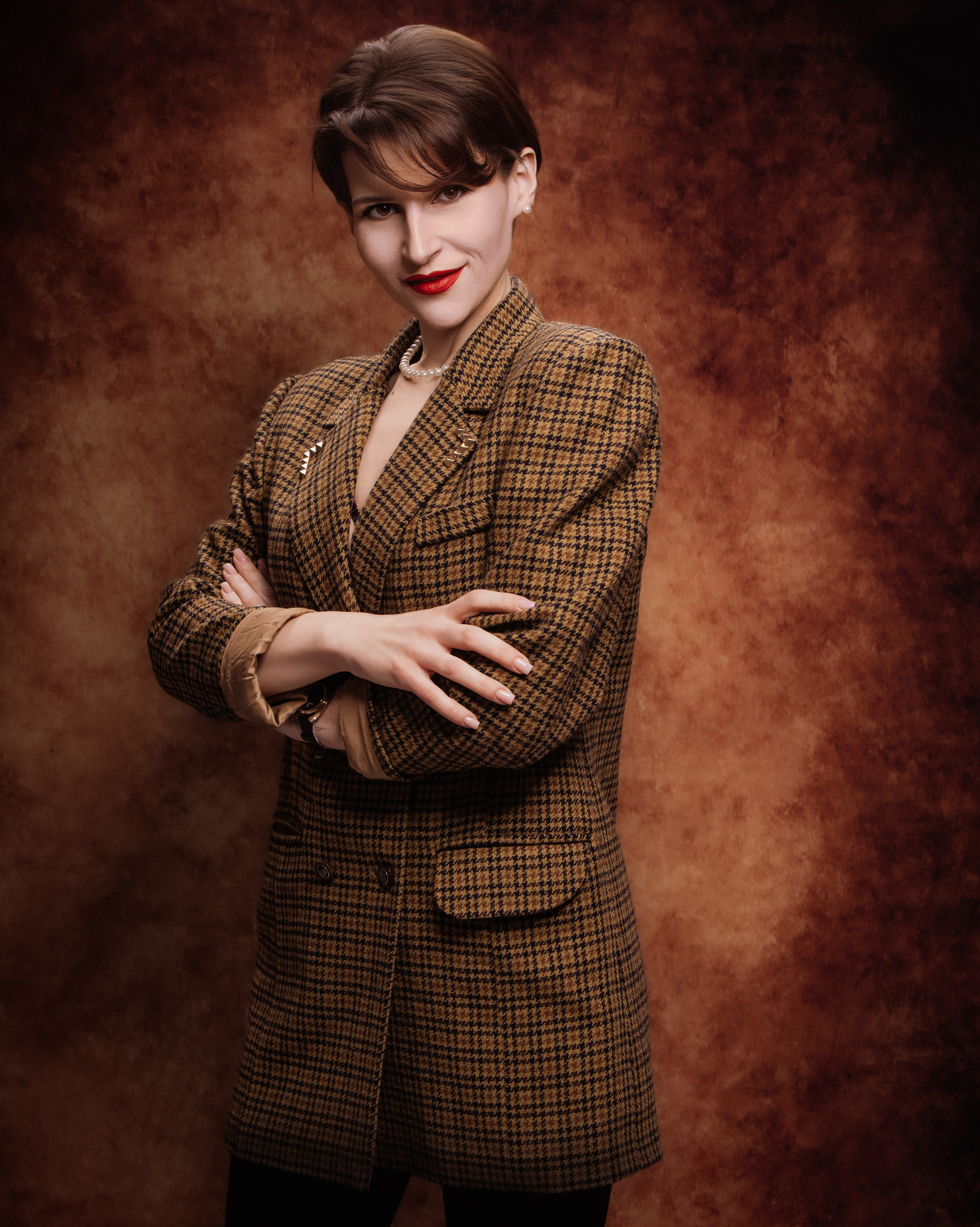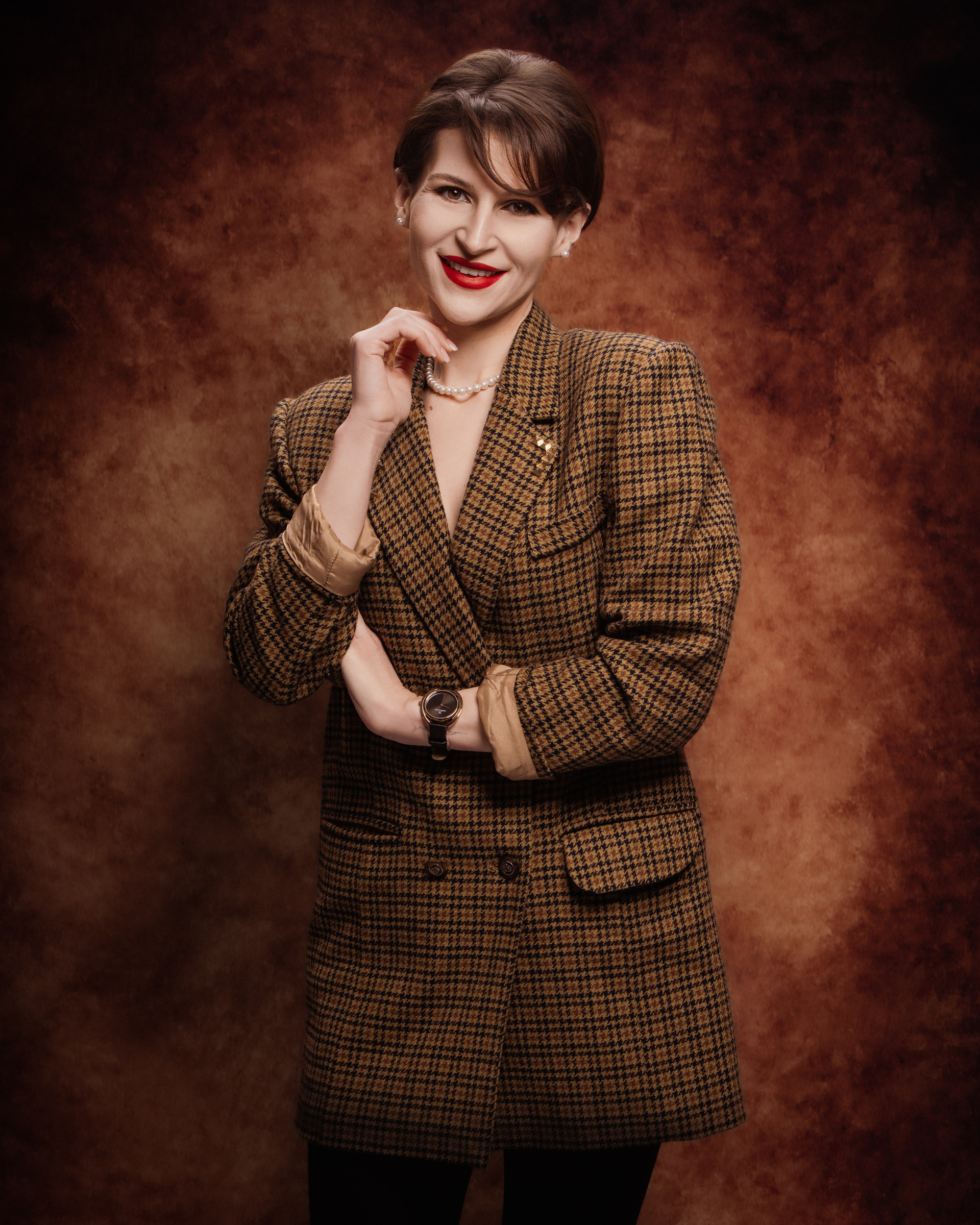 Portret artistic în studio, lumina direcțională și tonuri calde